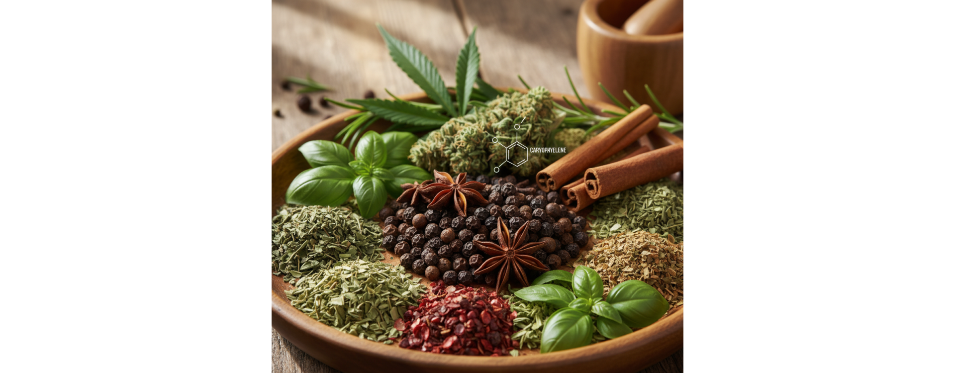Konopie siewne (Cannabis sativa) są jednym z najbogatszych źródeł beta-kariofilenu wśród roślin. W żywicy kwiatów konopi kariofilen terpen może stanowić od 4% do nawet 37% całkowitego profilu terpenowego, co czyni go często dominującym terpenem w niektórych odmianach. Ta wysoka zawartość nie jest przypadkowa - kariofilen odgrywa ważną rolę w ochronie rośliny przed szkodnikami i patogenami.